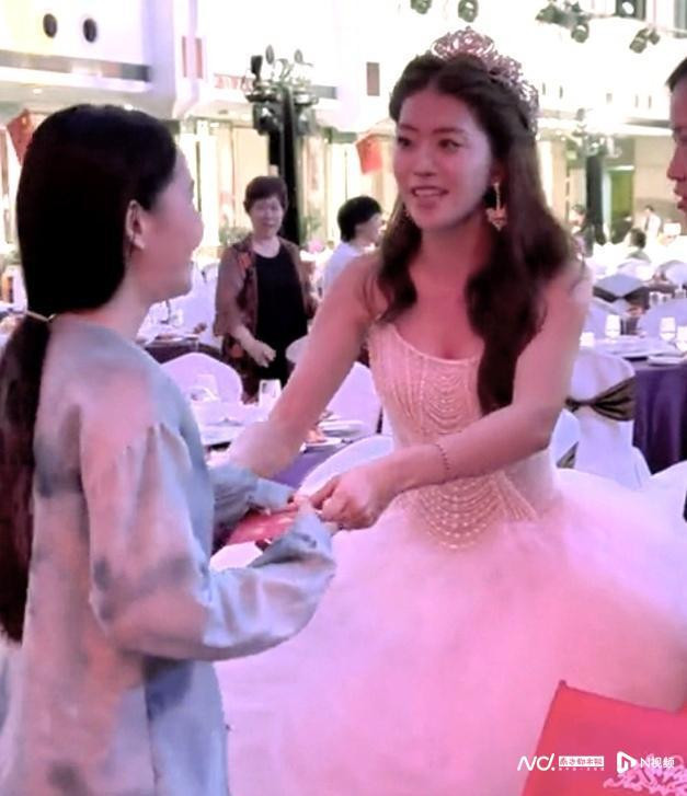 婚礼现场,吴家欣摸一下宾客的红包,折个角便还回去。视频截图