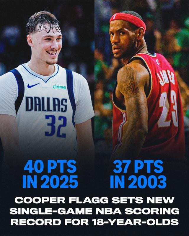另外,弗拉格也成了第三位不满20岁就能单场砍下40+5+5的球员,此前两位是詹姆斯和杜兰特。而42分也追平了独行侠队史新秀单场得分纪录(马克·阿吉雷)。